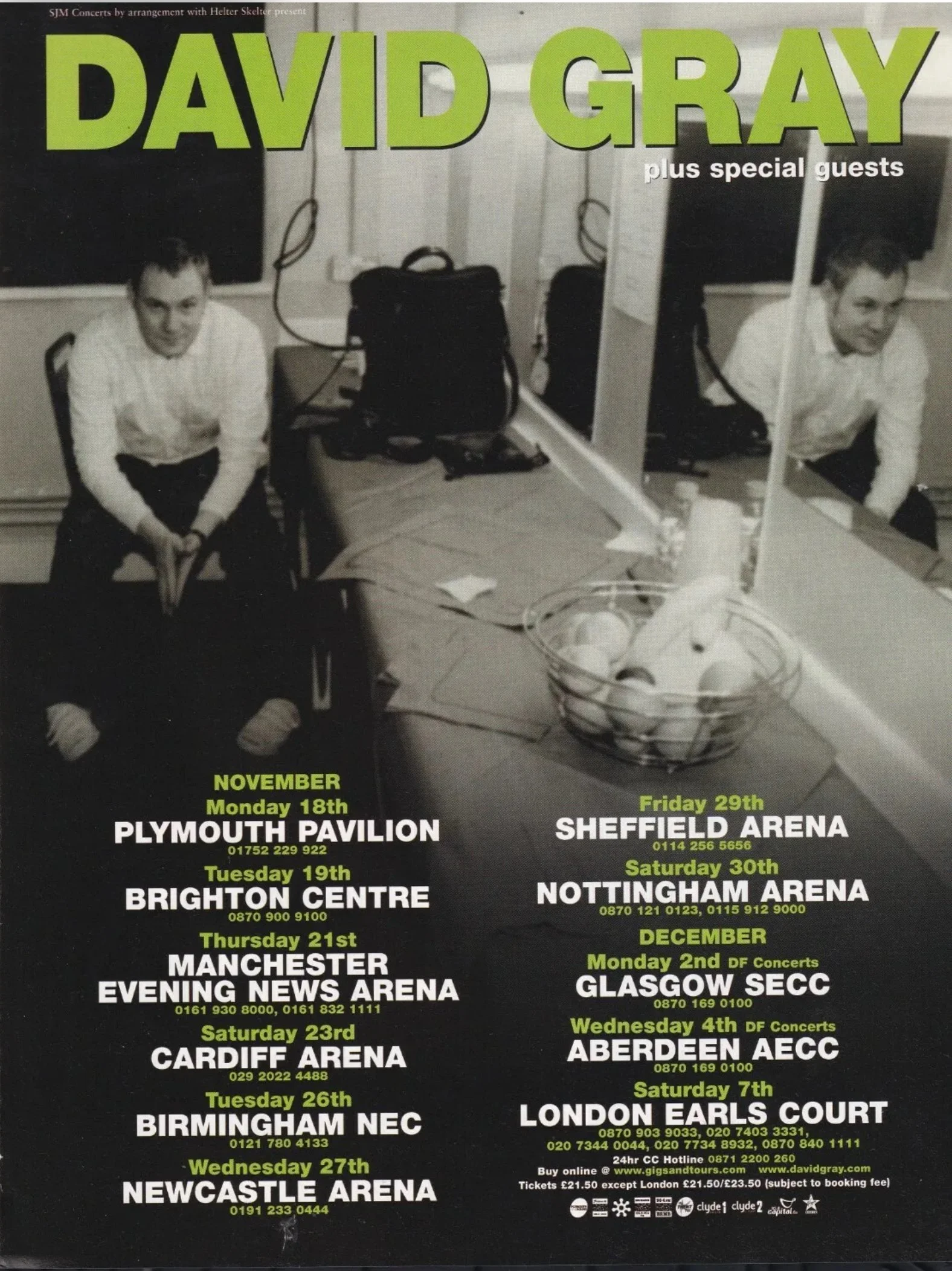 On this day, 23 November 2002, singer/songwriter David Gray played Cardiff International Arena on his A New Day At Midnight tour. Support was provided by Turin Brakes.