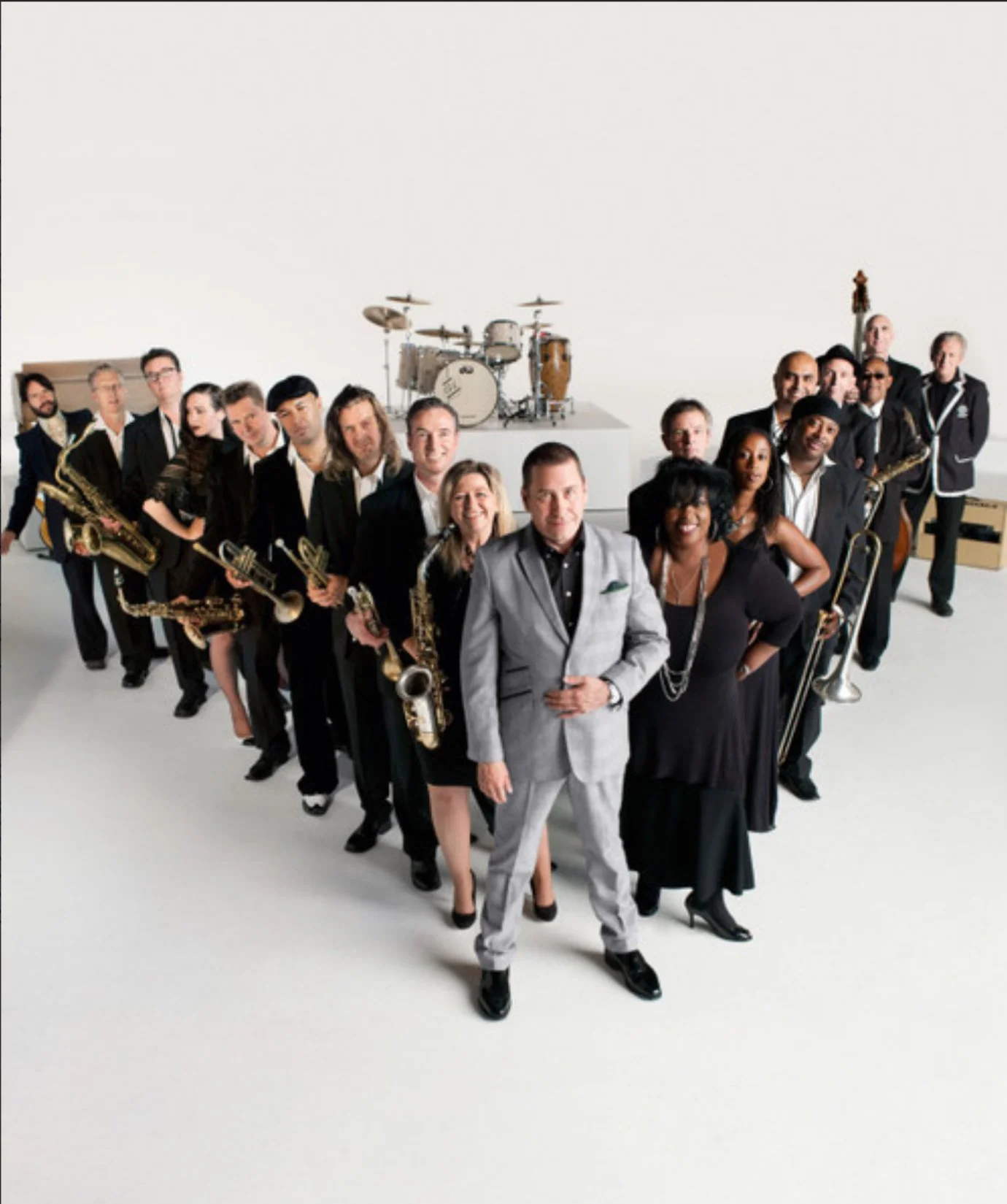 In 1987, Jools formed The Jools Holland Big Band – comprising himself and Gilson Lavis. This has gradually metamorphosed into the current 19-piece Jools Holland and His Rhythm & Blues Orchestra, which consists of pianist, organist, drummer, three female vocals, guitar, bass guitar, two tenor saxophones, two alto saxophones, baritone saxophone, three trumpets, and three trombones.
