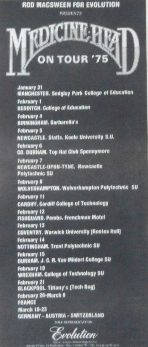 On this day, 11 February 1975, Blues/Rock band Medicine Head played Cardiff College of Technology.