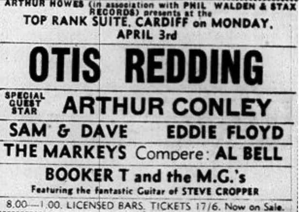 On this day, 3 April 1967, soul greats Booker T and the MG’s played Cardiff’s Top Rank. They were part of a soul revue, headlined by Otis Redding and also featured Sam and Dave, Arthur Conley, Eddie Floyd and The Markeys.