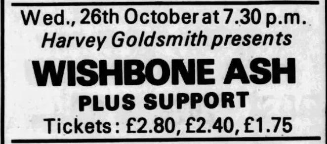 On this day, 26 October 1977, rock band Wishbone Ash played Cardiff’s Capitol Theatre. In support were the Motors.