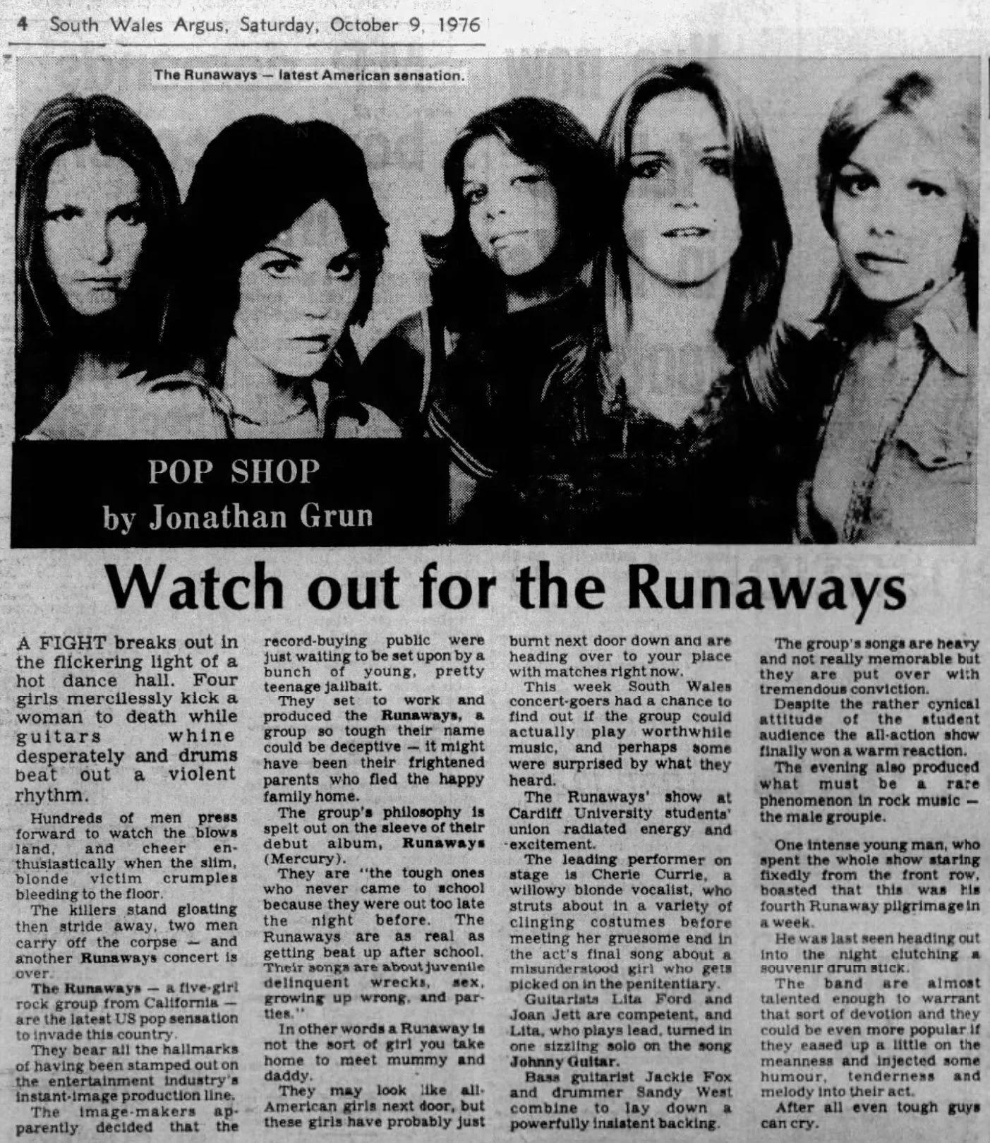 On this day, 4 October 1976, US rock band The Runaways played Cardiff University.
