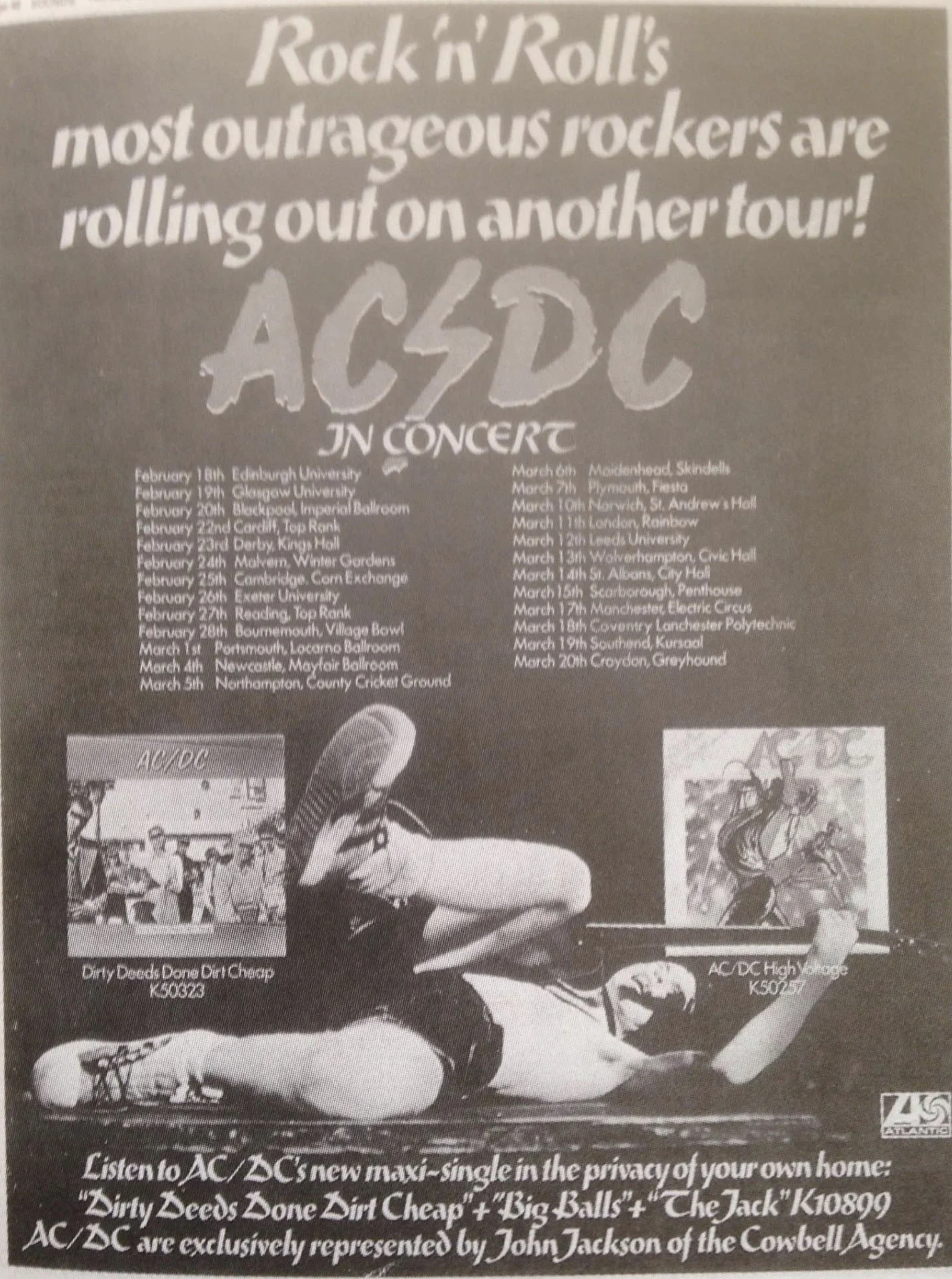 On this day,22 February 1977, legendary Australian rockers AC/DC played Cardiff’s Top Rank supported by The Jenny Darren Band. The band was actively touring to promote their album Dirty Deeds Done Dirt Cheap.