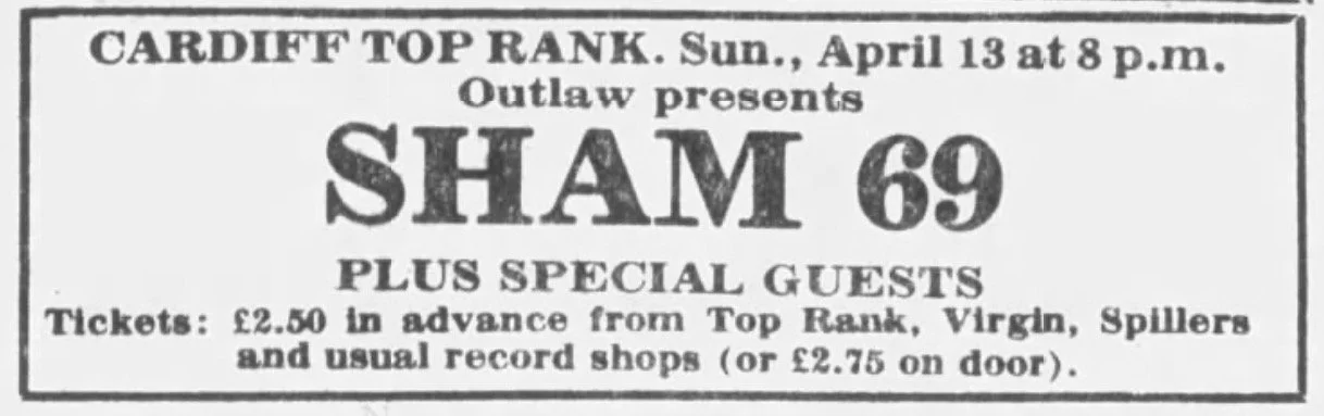 On this day, 13 April 1980, punk/Oi rock band Sham 69 played Cardiff’s Top Rank. The band had recently released their fourth and final album The Game. Their single taken from the album Tell The Children reached #45 in the UK singles chart when released in March.