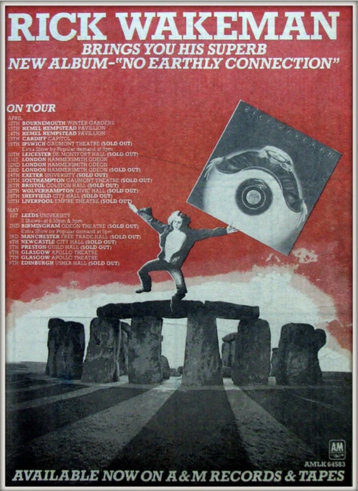 On this day, 15/04/1976 keyboard giant Rick Wakeman played Cardiff’s Capitol Theatre. He had just released his fourth studio album, No Earthly Connection, with the English Rock Ensemble. Recorded at Château d'Hérouville in France, the album charted at No. 12 in the UK and No. 29 on the Billboard 200.