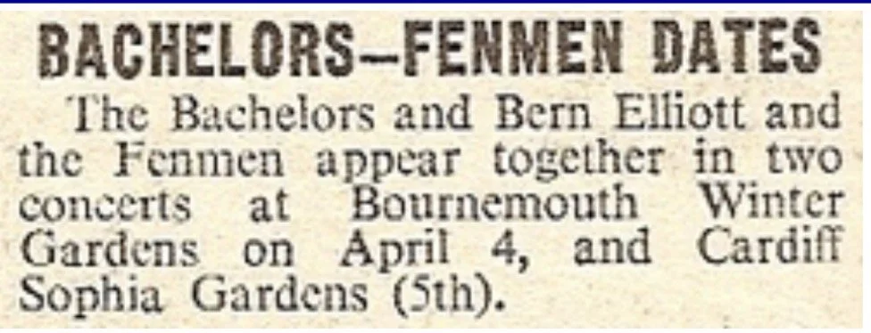 On this day, 5 April 1964, Irish popular music group The Bachelors played Cardiff’s Sophia Gardens. Support was provided by Bern Elliott & The Fenmen.