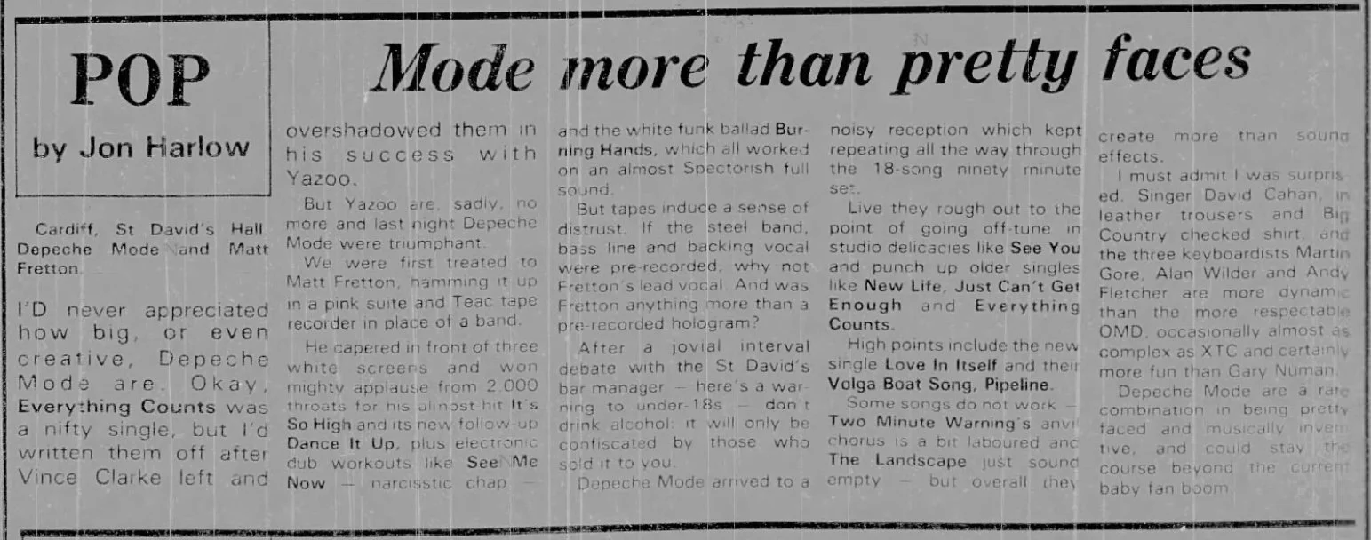 On this day, 6 October 1982, Midlands band Dexys Midnight Runners played Cardiff St David’s Hall on "The Bridge" tour. The band were accompanied by new-recruits, Spike Edney on trombone and saxophonist Kevin Gilson.