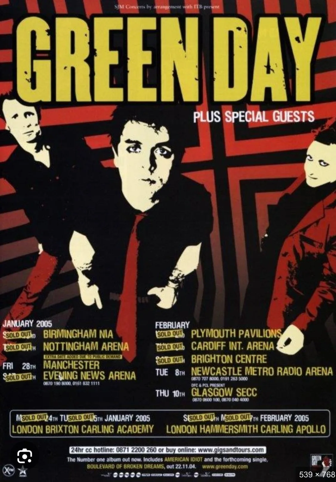 On this day, 4 February 2005, American rock band Green Day played Cardiff International Arena on their American Idiot tour.