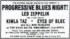 The Progressive Blues Night at the Top Rank was in aid of the Biafran Relief Organisation. Unfortunately only 450 people turned up to watch and the charity event actually lost money to the tune of £100.