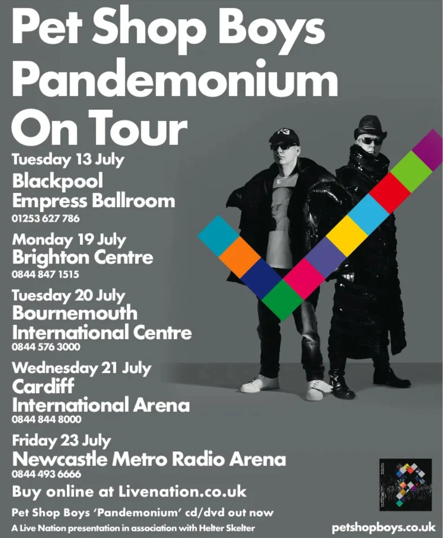 The Pandemonium Tour was a worldwide concert tour by British pop duo Pet Shop Boys in support of their tenth studio album Yes. The tour visited Europe, Asia and the Americas.