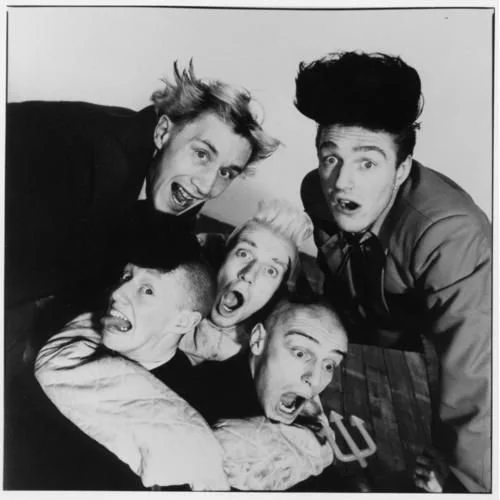 Harvey left in 1982 to be replaced by Gary "The Smeg" Clayton as vocalist, and it was at Harvey's farewell concert at the 101 Club in Battersea, London that the infamous "food fight" gigs started. The band were known for their stage performances in which eggs and bags of flour were thrown around both on and off stage.