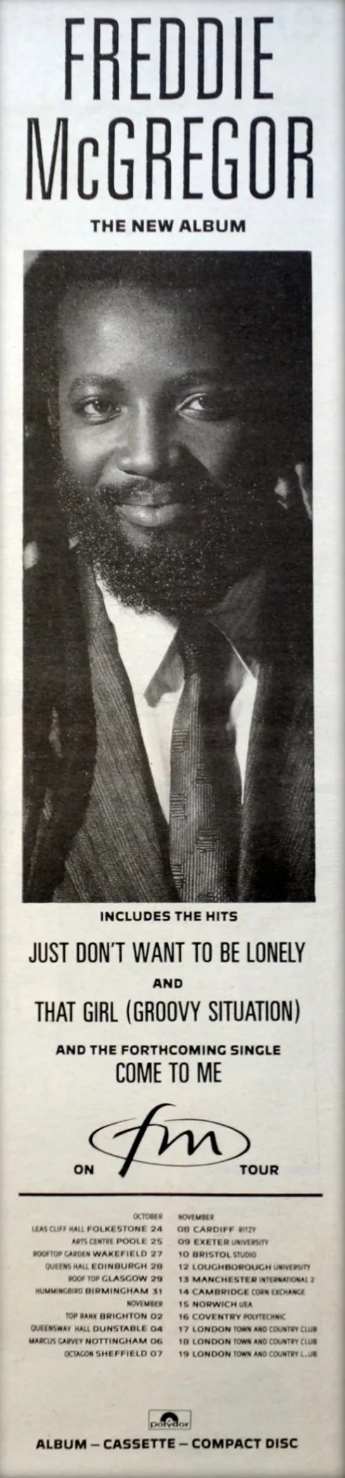 On this day, 8 November 1987, Jamaican singer, musician and record producer Freddie McGregor played Cardiff’s Ritzy Night Club. His music career began when he was seven years old.