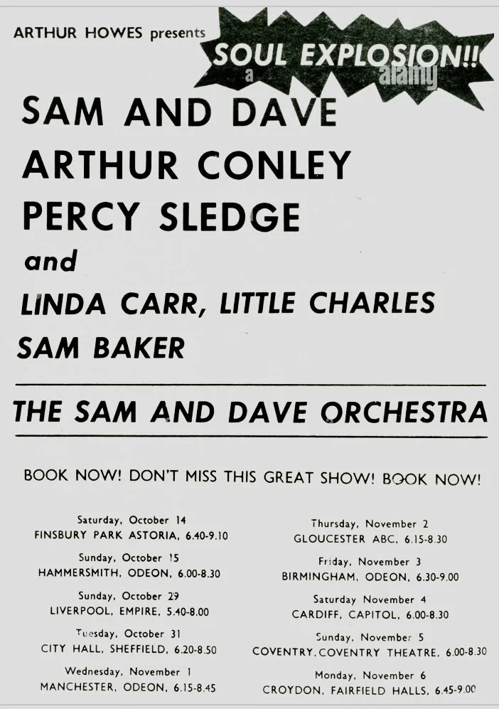 On this day, 4 November 1967, soul legends Sam and Dave played the Capitol Theatre on their “Soul Explosion” tour. Support was provided by Arthur Conley, Linda Carr, Little Charles and Sam Baker, Percy Sledge was to be part of the package but was replaced by Lee Dorsey due to illness.