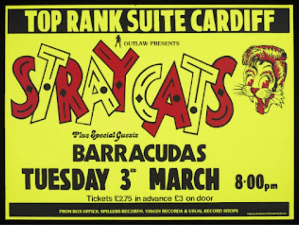 On this day, 3 March 1981, American rockabilly band The Stray Cats played Cardiff’s Top Rank with support provided by the Barracudas.
