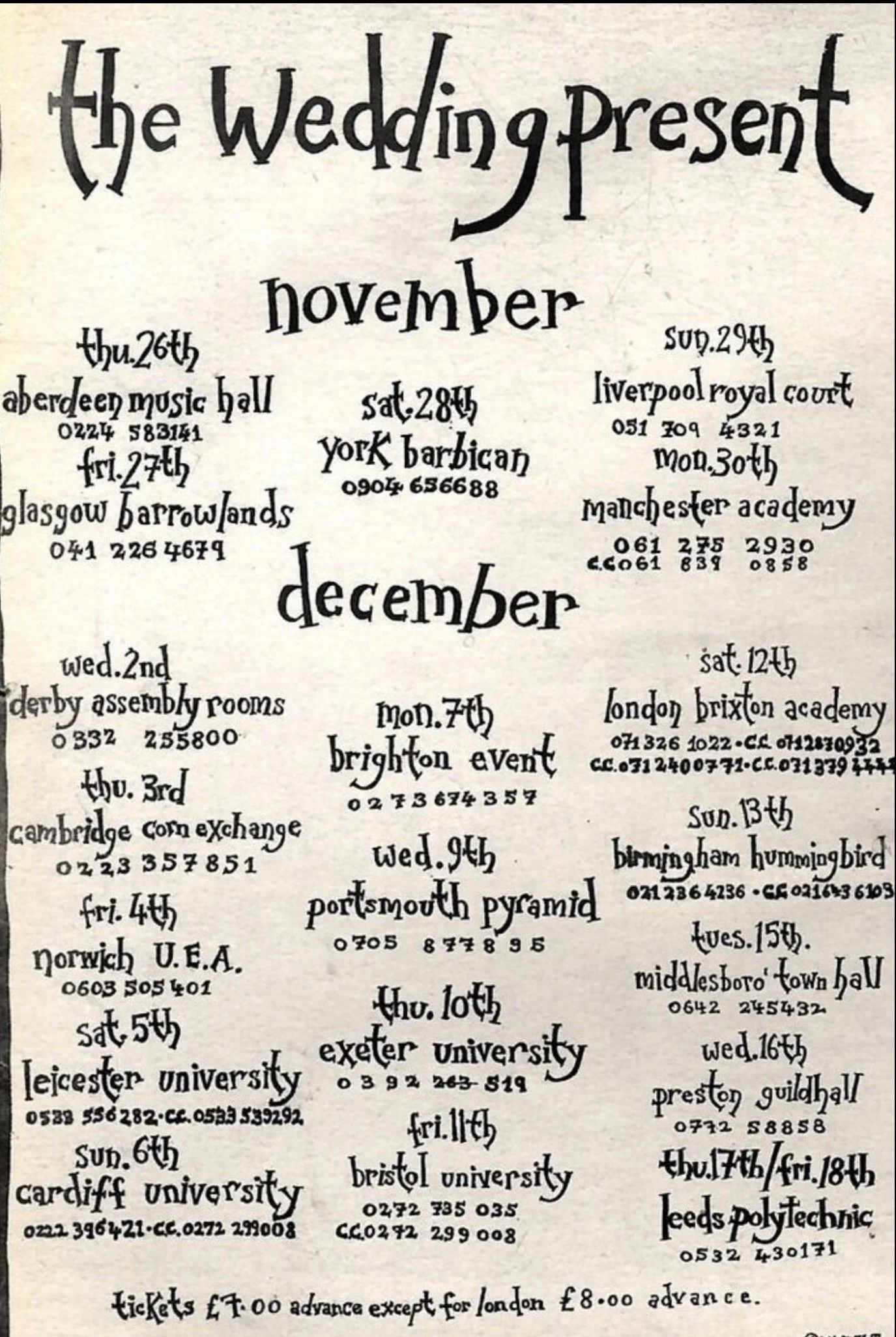 On this day, 6 December 1992, indie band The Wedding Present played Cardiff University.
