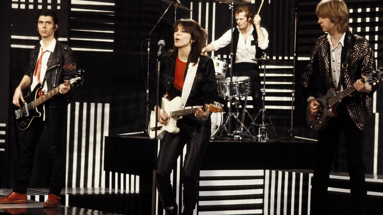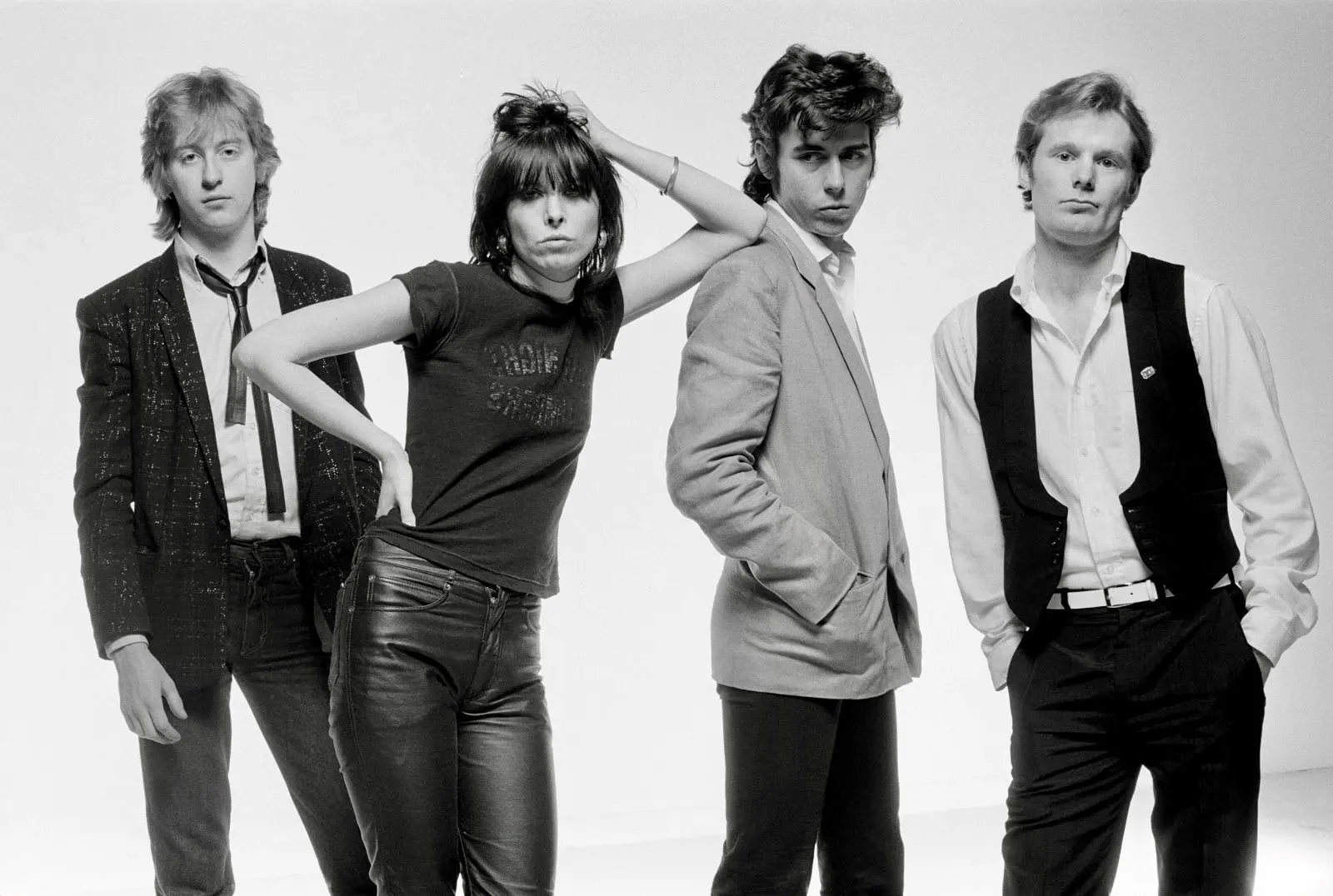 Formed in March 1978. The original band consisted of founder and main songwriter Chrissie Hynde (lead vocals, rhythm guitar), James Honeyman-Scott (lead guitar, backing vocals, keyboards), Pete Farndon (bass guitar, backing vocals), and Martin Chambers (drums, backing vocals, percussion). Following the deaths of Honeyman-Scott and Farndon in 1982 and 1983, the band experienced numerous personnel changes; Hynde has been the band's only consistent member.